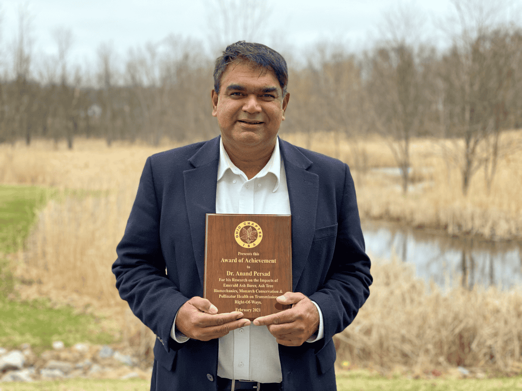 Dr. Persad was presented the award, for his research on the impacts of the emerald ash borer, ash tree biomechanics, monarch conservation, and pollinator health on transmission rights-of-way, during the annual Ohio and Kentucky Tree Care Conference and CA Review, held virtually February 22-25.
