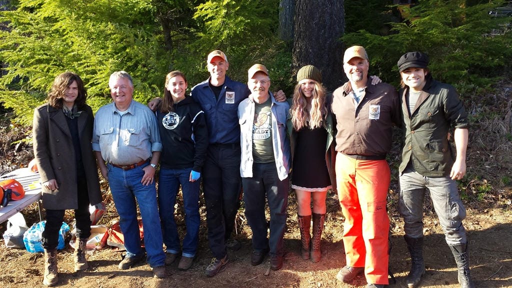 The day started very early. We had a to meet onsite before sunrise at the logging camp. When we arrived we could feel the excitement. The crew started filming other scenes of the band interacting with the rest of the cast, driving through the forest, and looking at the trees that they were contracted to remove. When it was time for our part, our team went to work. We set cameras, cut the trees, and then taught the band chainsaw safety before allowing them to do some cutting. Everyone from the STIHL team was very professional as per usual and it went off without a hitch.