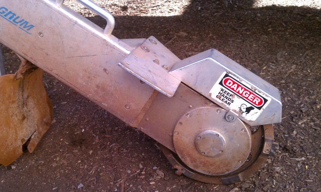 If I could not have bought a better one I would never part with it. If you have never owned one of these you are missing out; mine fits in the man box so no need to have an extra trailer and truck/man or make another trip etc. most of the time the stump is history before I could go back to get bigger ride-on grinder. I have all the guards and covers that came with this but I don't know why anyone would want them as they only make it weigh more; HERE COMES A LAWSUIT! The motor works fine and is strong but has trouble idling properly; sometimes it races and sometimes stalls because of slow idle, strange. I hate two cycle engines; they can be so finicky. It may need seals. I have a spare motor that goes with it which is also strong but it needs this and that also. It will need a belt by the looks of things because it is at the end of its adjustment and squeals when cold. A new belt comes with it. I can't think of anything else. I'm not going to ship it, besides you will want to try it out.