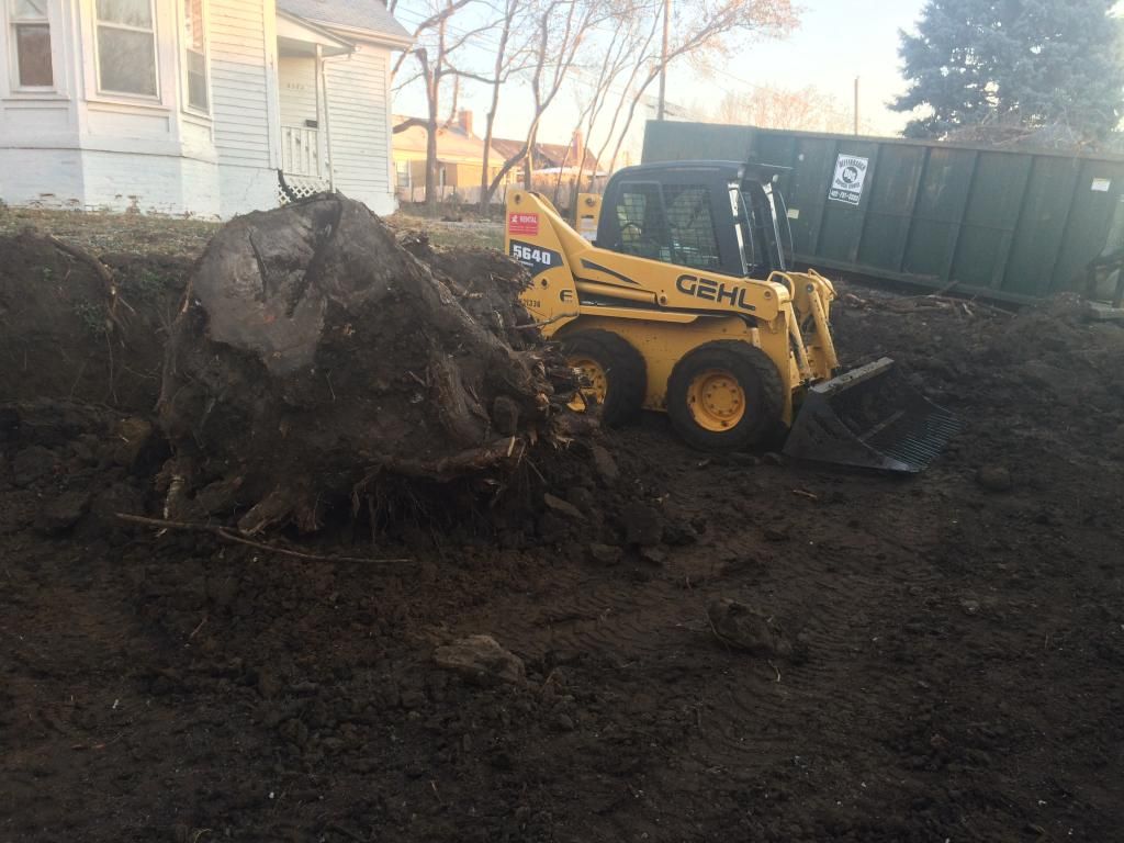 We removed this tree a few months ago for a customer. It was grown next to building and a cinderblock wall. I told him I wouldn't be able to grind the stump due to its location and that it has concrete blocks grown in it. Fast forward 3 months and now he is rebuilding the wall and grading dirt. The new wall needs to be right down the middle of the stump due to lot lines. I told him to excavate it out but after excavating some dirt we discovered the building didn't have the footer it should have been built with and instead was poured on a slab only. That means the tree roots are growing under the garage floor. Excavation will likely ruin the garage floor and create a cavity under the building. My initial thought is build an earth ramp to the stump and just grind through it, concrete and all. I hate to do that to my machine and teeth.